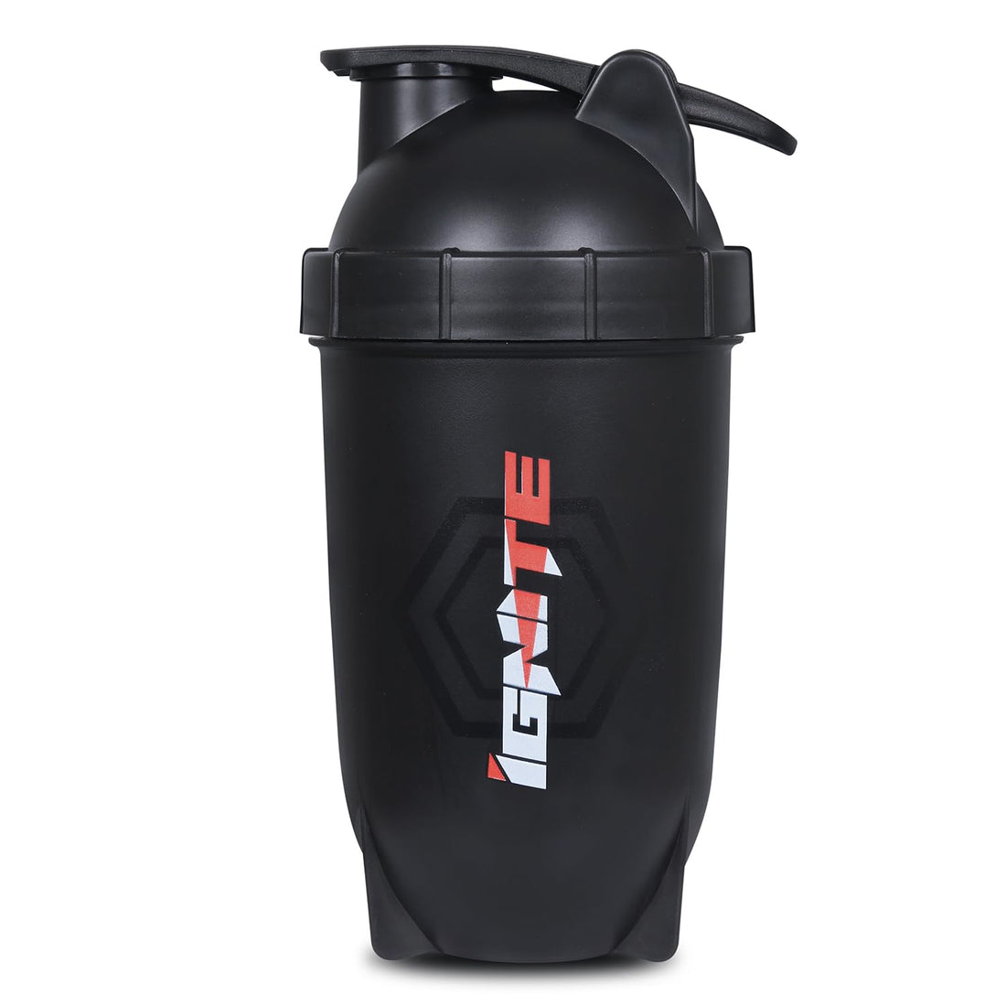 Vector X Ignite Plastic Shaker Mixer Blender Bottle Portable Pre Workout Protein Drink Shaker Cup (Black,600 ml)