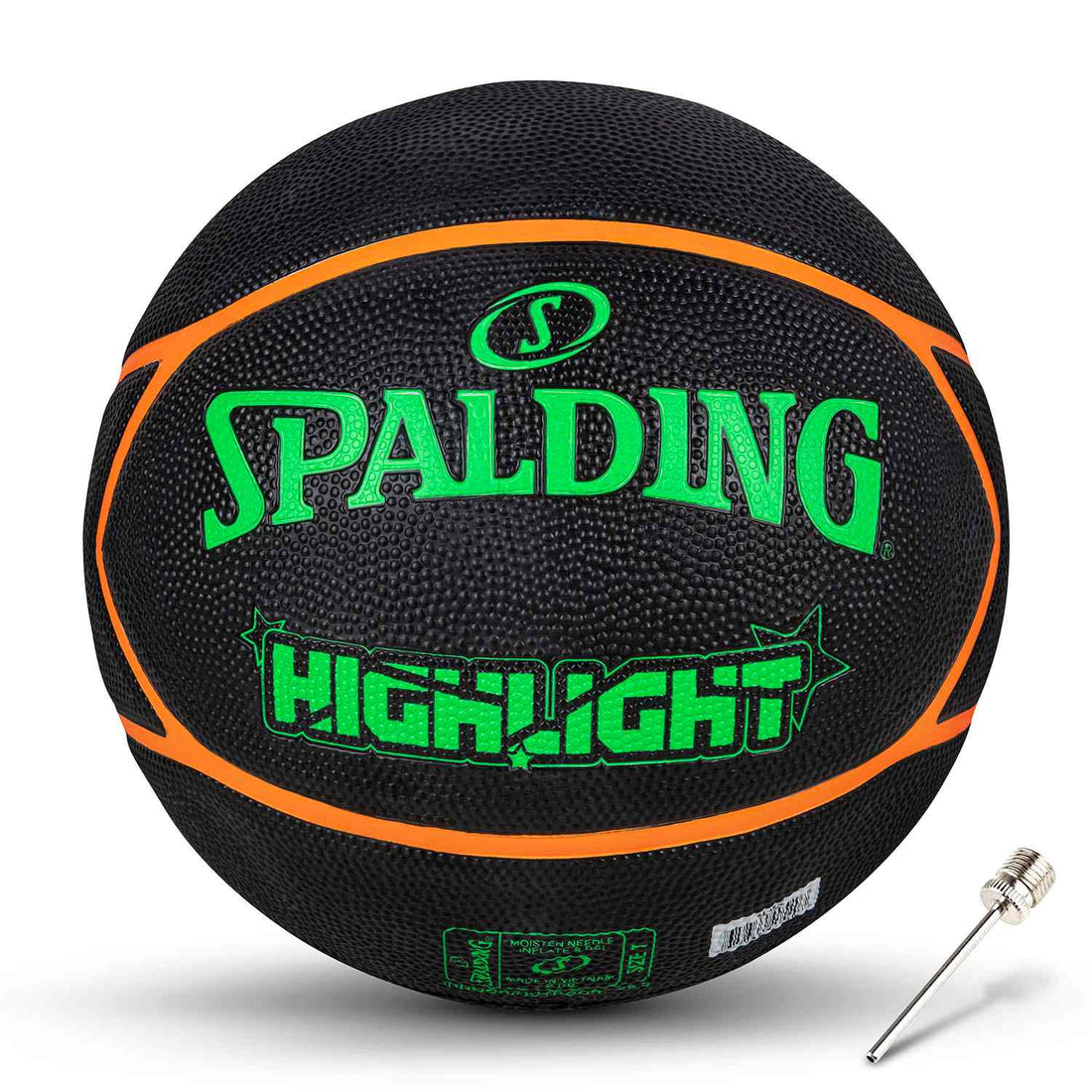 Spalding 8 Panel Highlight Rubber Moulded Indoor/Outdoor Basketball with Butyl Bladder, Suitable for Practice/Match/Training + Free Air Needle