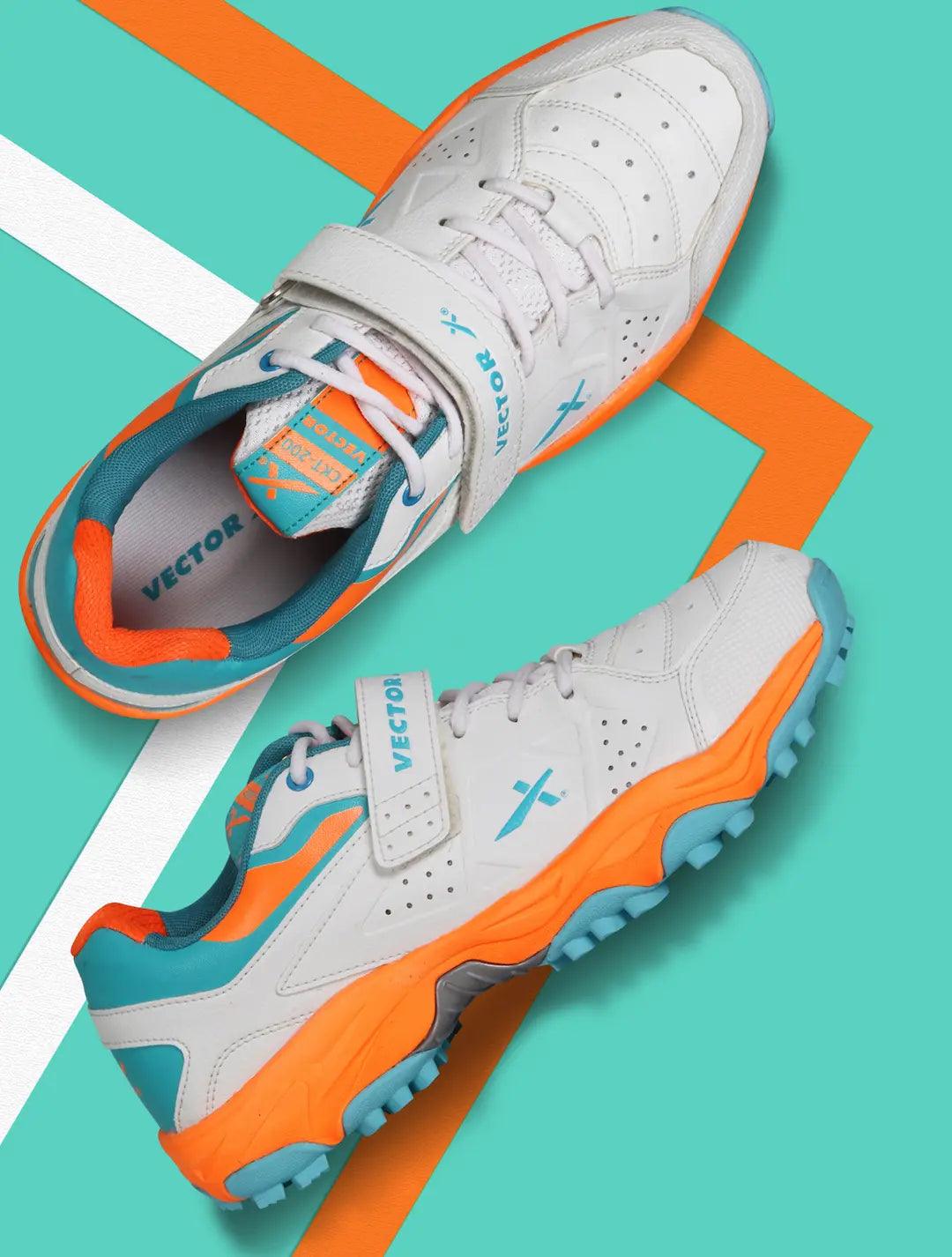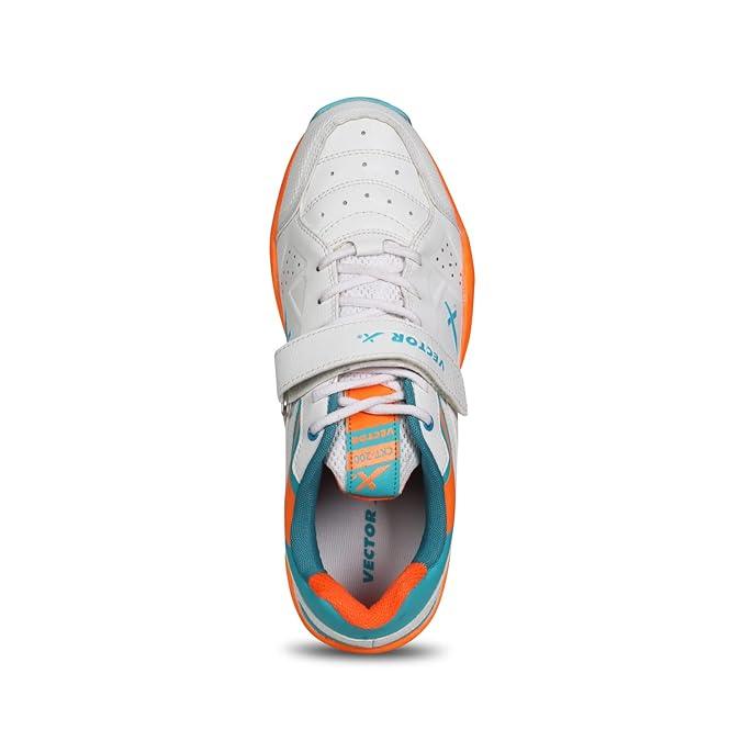 VECTOR X CKT-200 Rubber Cricket Shoes For Men (White, Orange)