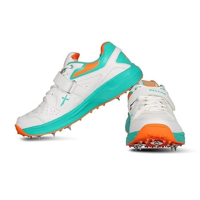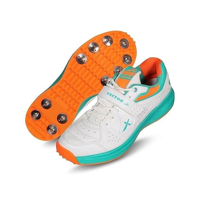 VECTOR X CKT-200 Spikes Cricket Shoes For Men (White, Orange)