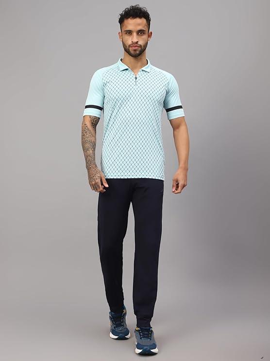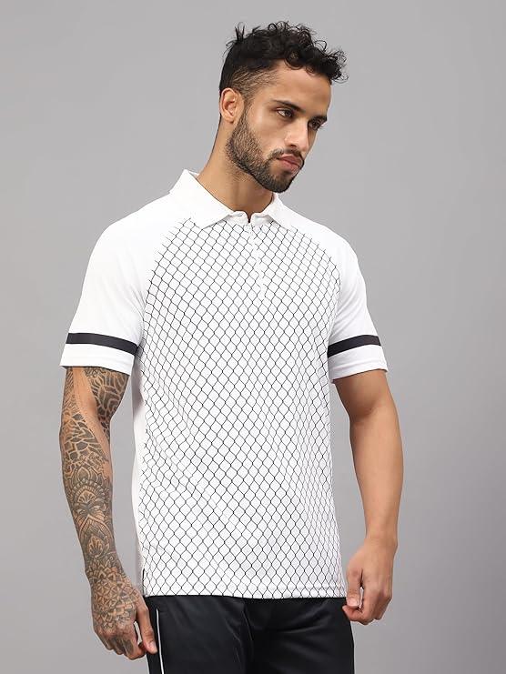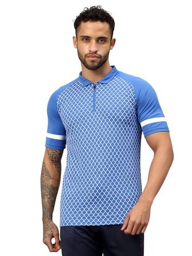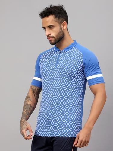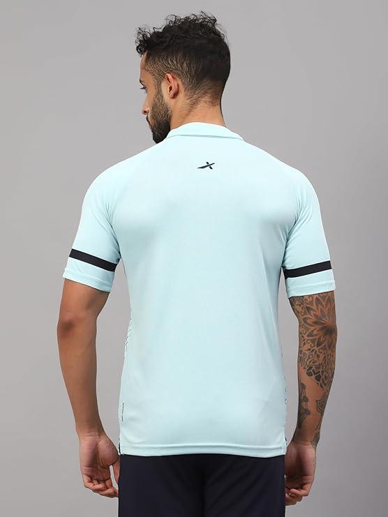 Vector X Mens Sports Wear Polyester Front Printed Collar Neck with Front Zipper Opening Half Sleeves T-shirt For Running, Training, Athletic