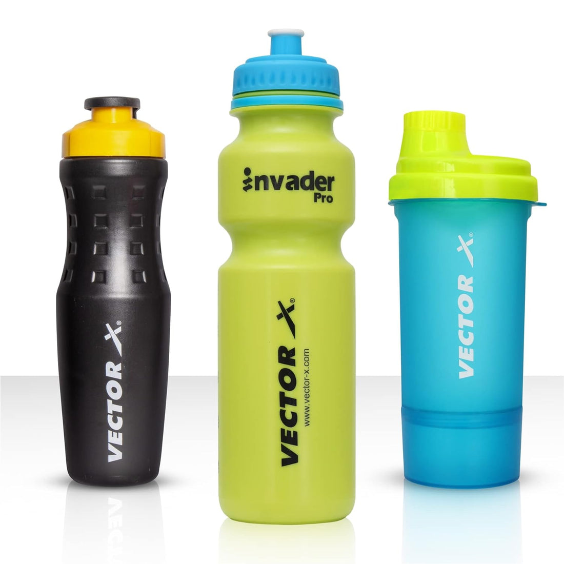 VECTOR X Active Bottle & Super Shaker & Invador Green (Pack of 3)