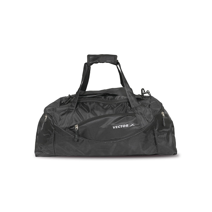 Vector X Calibre Polyester Material 43 Litre - Multi-Purpose Sports Team Kit|Gym Duffel Bag|Spacious Main Compartment|Fitness Travel Luggage Shoulder Bag -Adjustable Handles Strap (Black) Size 61 X 27 X 26 Cm