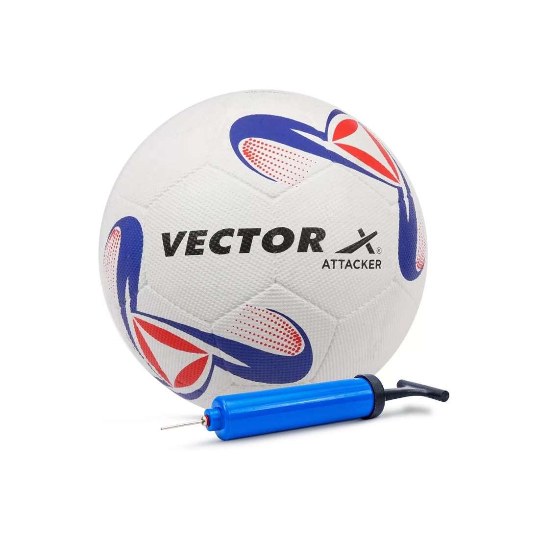 Vector X Synthetic Rubber Moulded Attacker Footballl With Pump (Size-5) (White-Blu-Red)