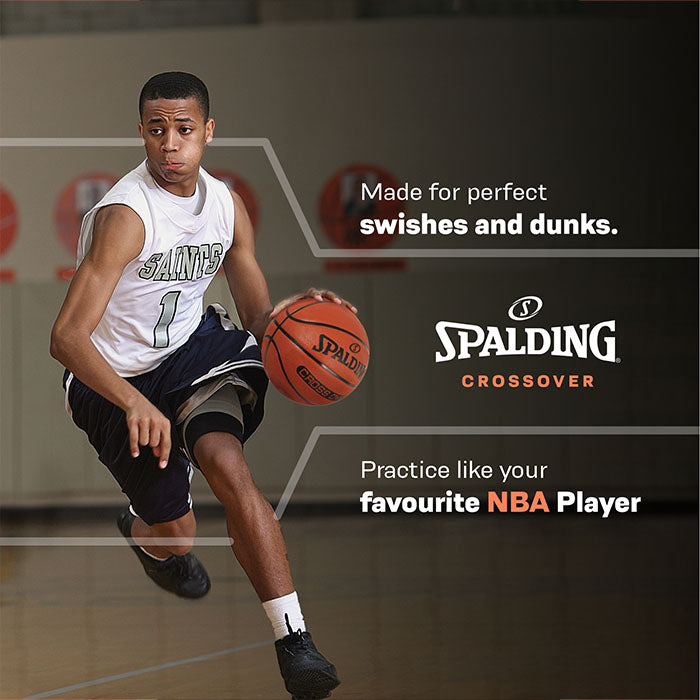 Spalding Crossover Rubber Moulded Indoor/Outdoor Basketball With Rubber Bladder, Brown, Size: 7 (Suitable for Practice/Match/Training) + Free Air Needle