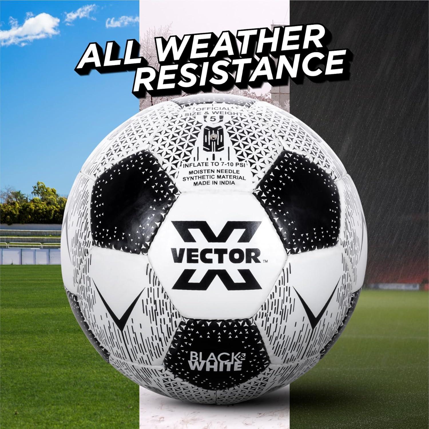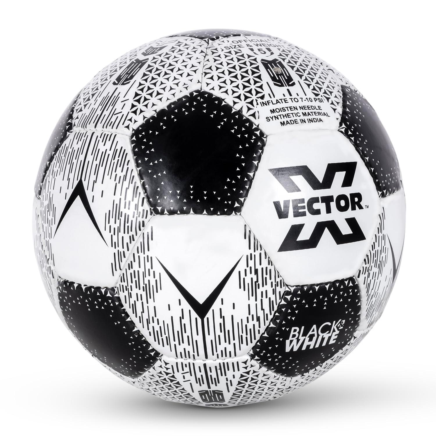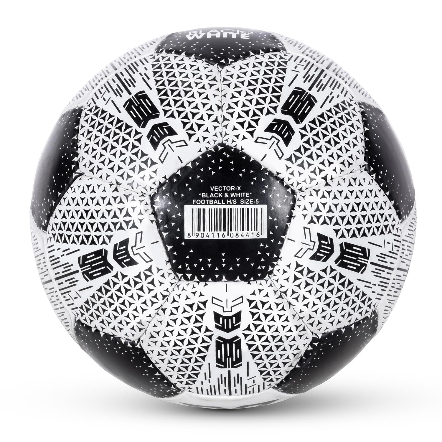 Vector X Black & White Football/Rubberized Hand Stitched Football/32 Panel/Suitable for Hard Ground Without Grass/Training Football/for Men/Women/Size - 5 (Black/White)