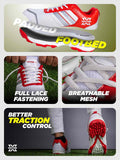 Experience unmatched comfort and performance with Vector X Football Shoes, crafted for durability and precision on the field. The synthetic upper delivers a soft touch while ensuring long-lasting wear. The PVC outsole provides excellent grip and enhanced comfort during play. A pre-molded heel counter offers added protection and a secure fit around the heel. Designed for all-day support, the shoes feature a padded ankle collar, cushioned footbed, and full lace fastening for a snug fit. The EVA insocks laminated with polyester fabric add an extra layer of cushioning, making these shoes perfect for intense training and matches.