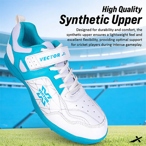 The Vector X Bouncer 2.0 Cricket Shoes for Men are engineered to deliver all-round performance, combining durability, comfort, and modern sporting design. Built with a robust synthetic upper, these shoes offer a soft touch while maintaining long-lasting strength during intense matches. The breathable mesh panels enhance ventilation, keeping feet cool and comfortable through long hours of play. A PVC and rubber studded outsole ensures superior traction, stability, and slip resistance on various cricket surfaces. The premolded heel counter provides added protection and a secure fit, while the padded ankle collar and cushioned footbed enhance overall comfort. Full lace fastening ensures a personalized lockdown, and EVA insocks laminated with polyester fabric offer lightweight support and shock absorption. Designed for both training and competitive gameplay, the Vector X Bouncer 2.0 blends functionality with comfort, making it an ideal choice for cricketers seeking dependable footwear.