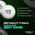 Vector X Club 3 Star Premium ABS Plastic Table Tennis Balls High Performance TT Balls for Professional Matches and Training Ideal for Adults & Kids