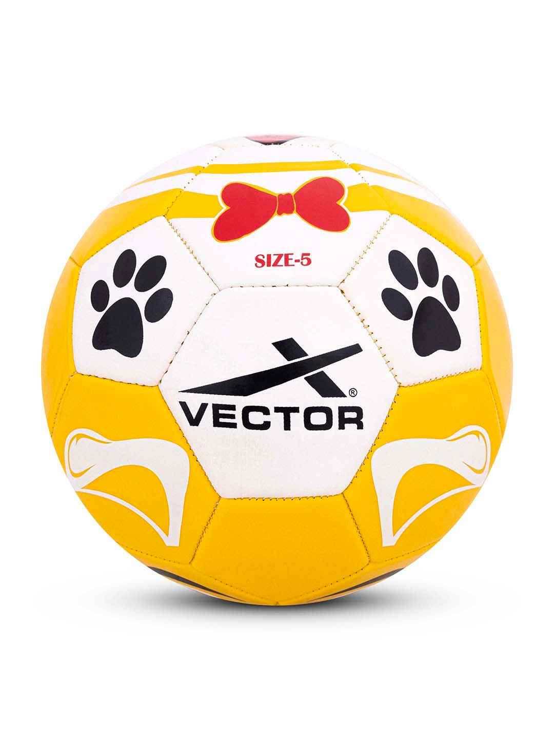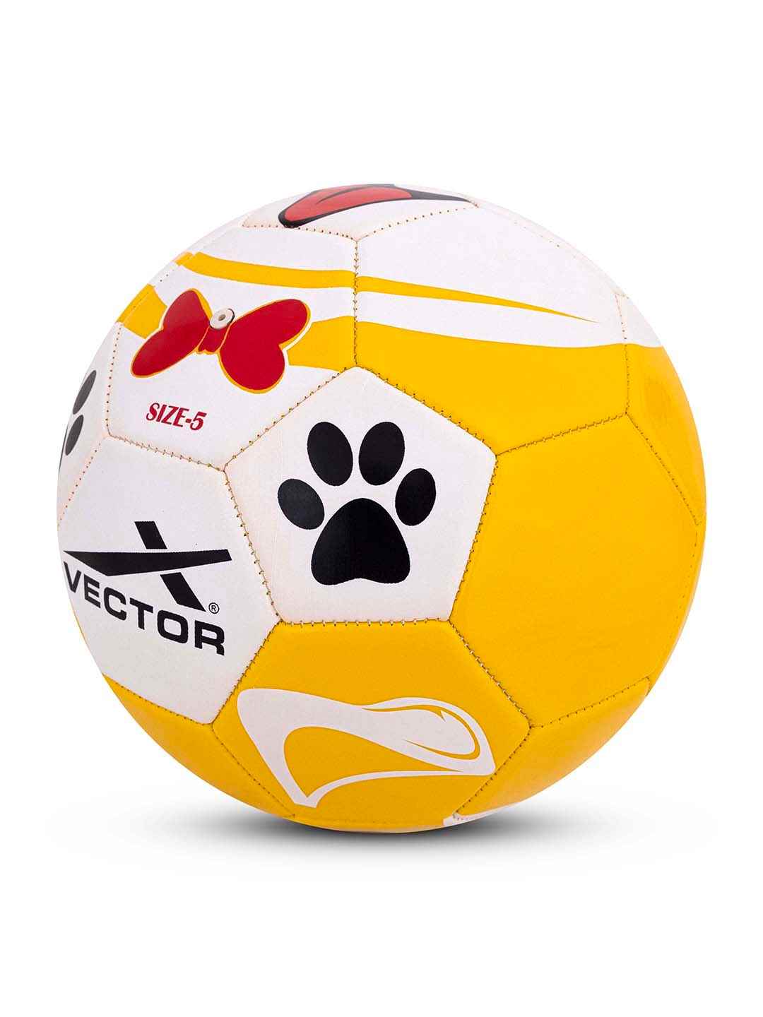 Make playtime exciting with Vector X dog face football designed especially for kids. Size 5 of this soccer ball for boy and girl features a fun animal cartoon print that children will love. Made from durable PVC machine stitched material with a strong 32 panel design, it offers long-lasting performance. With a diameter 23 cm and excellent water resistance, it’s perfect as an indoor outdoor ball. The package also includes a ball with pin for easy inflation.