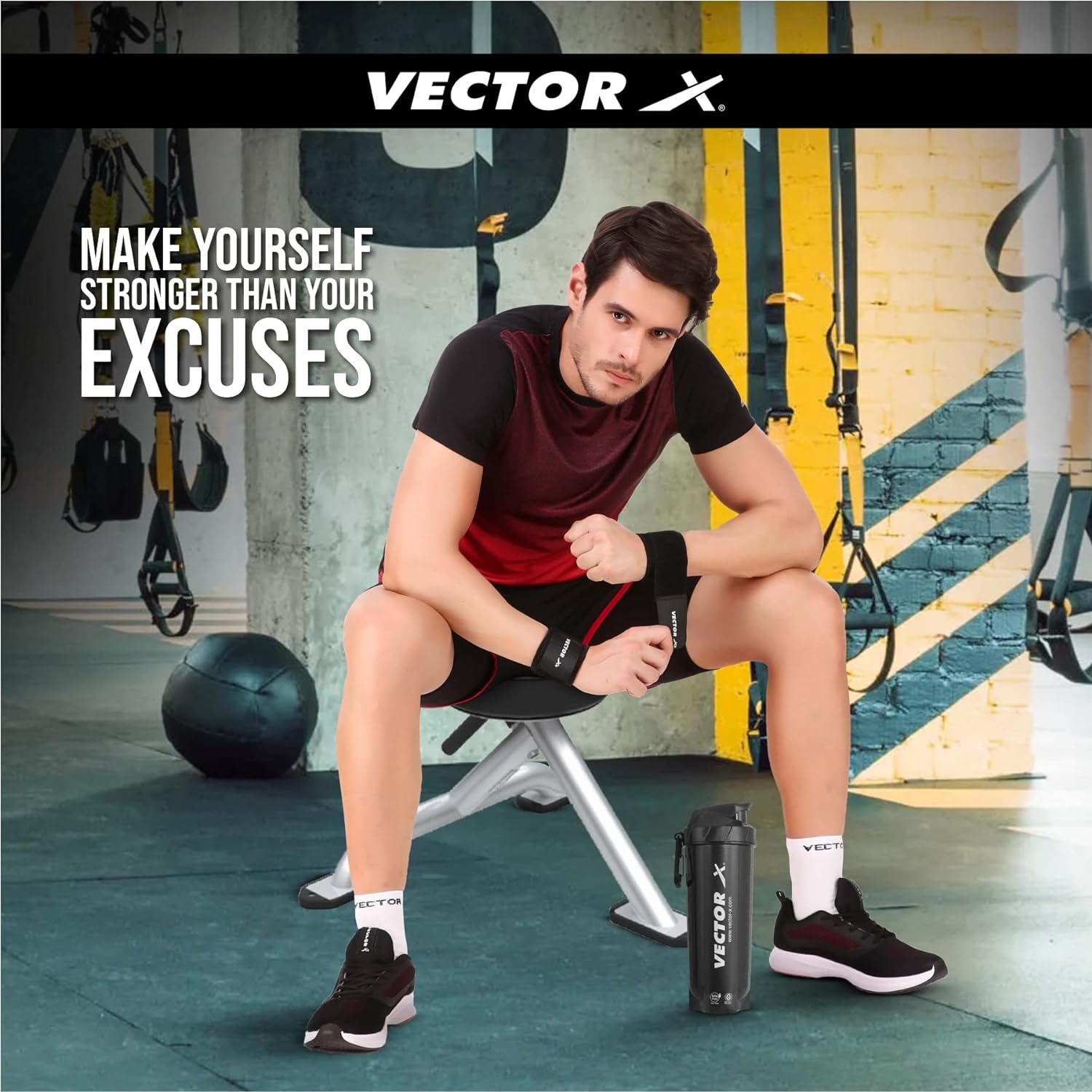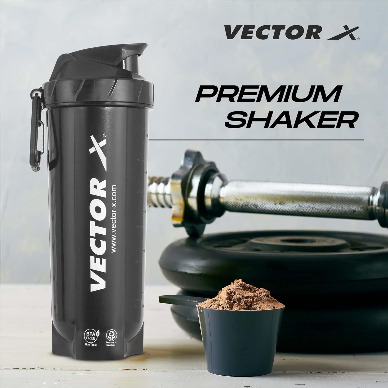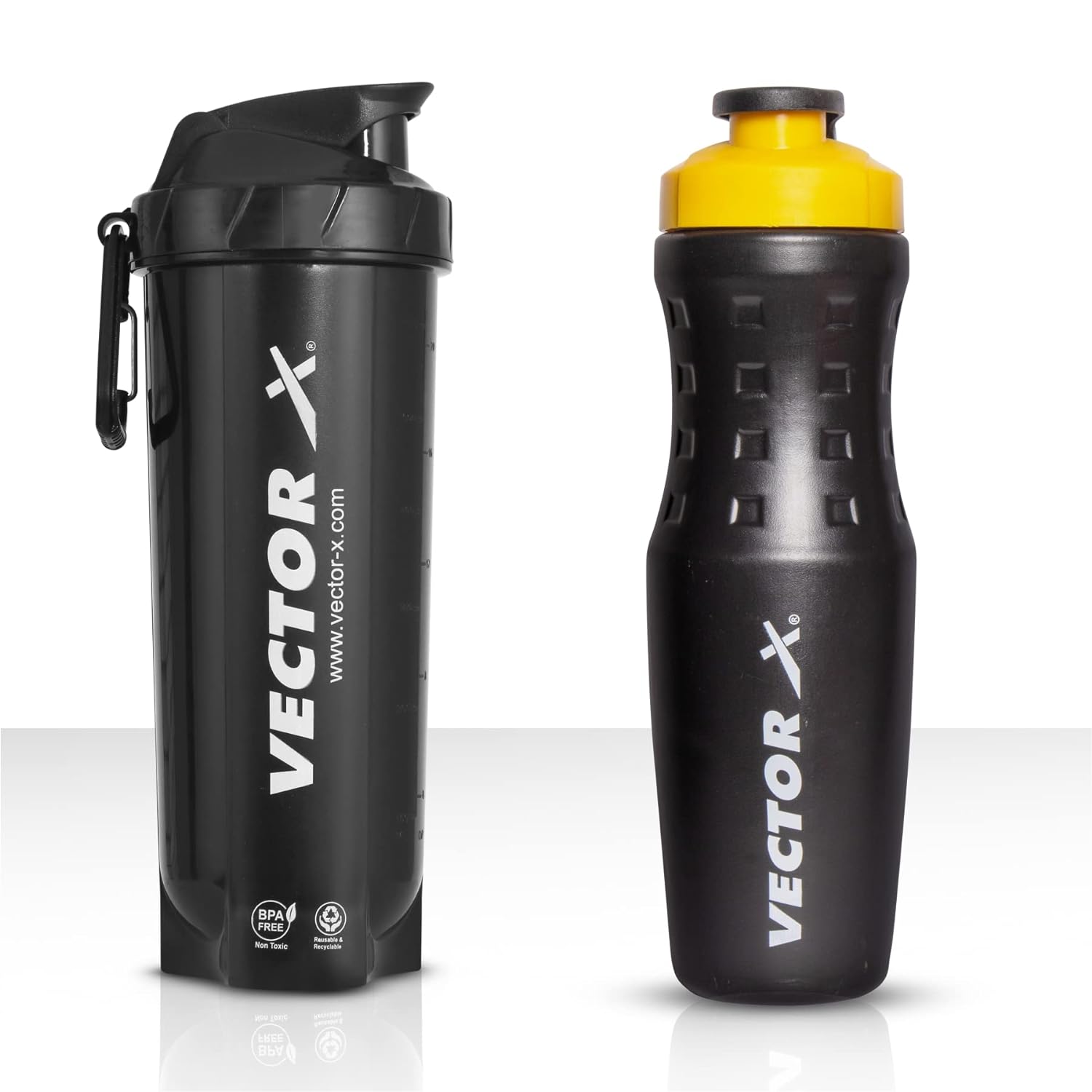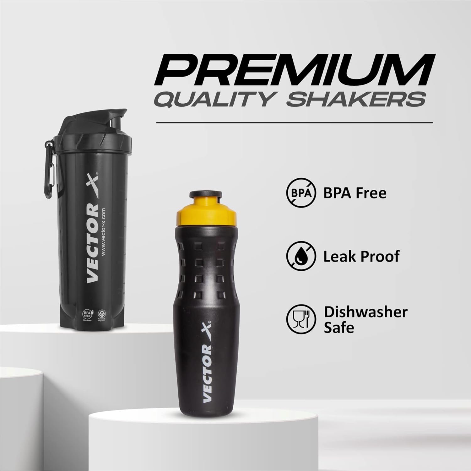 VECTOR X Energy Shaker & Active Bottle for Protein Shake Gym Sipper Shaker 750 ml Shaker (Pack of 2, Black, Plastic)