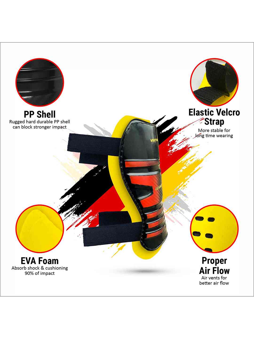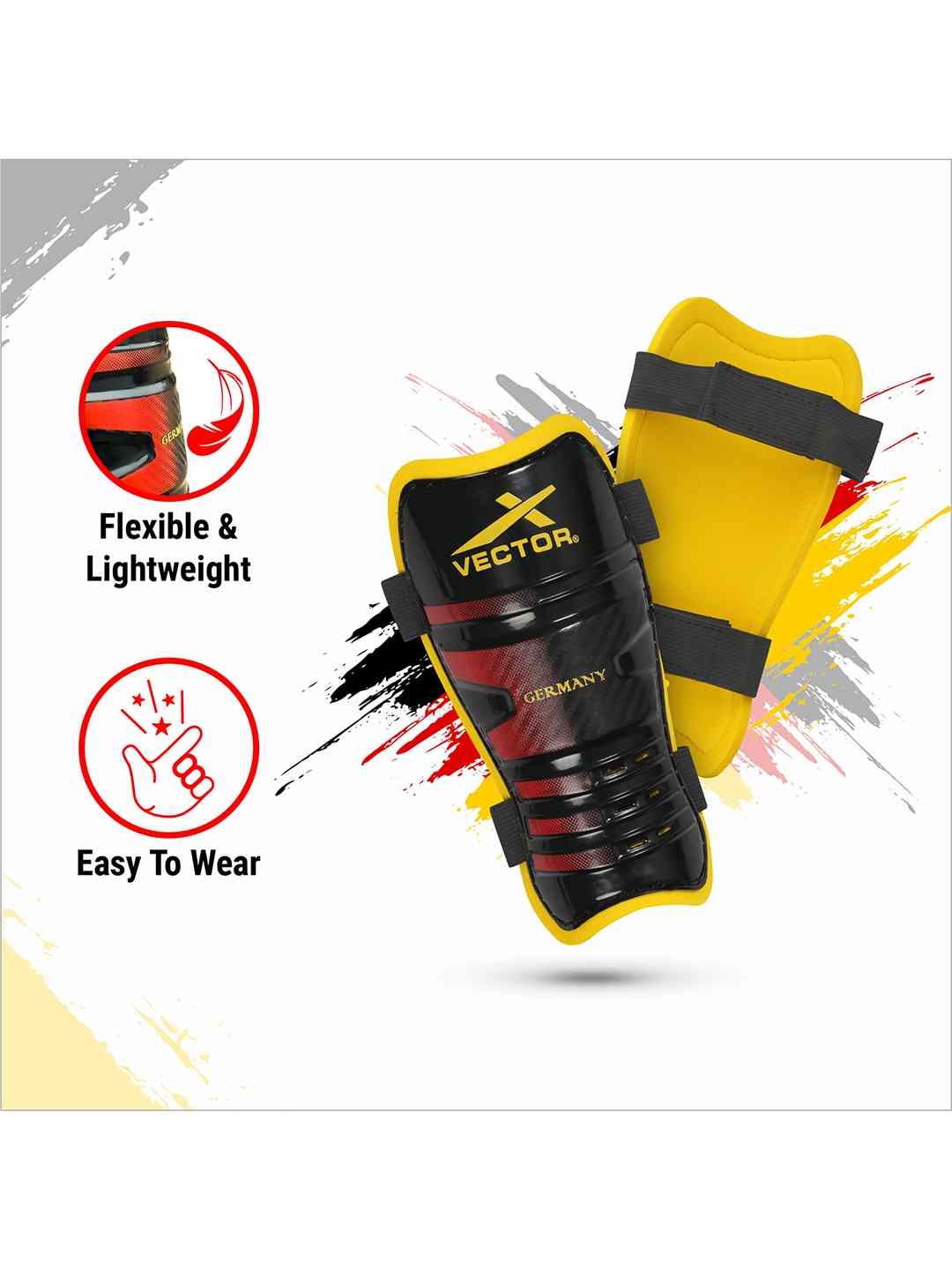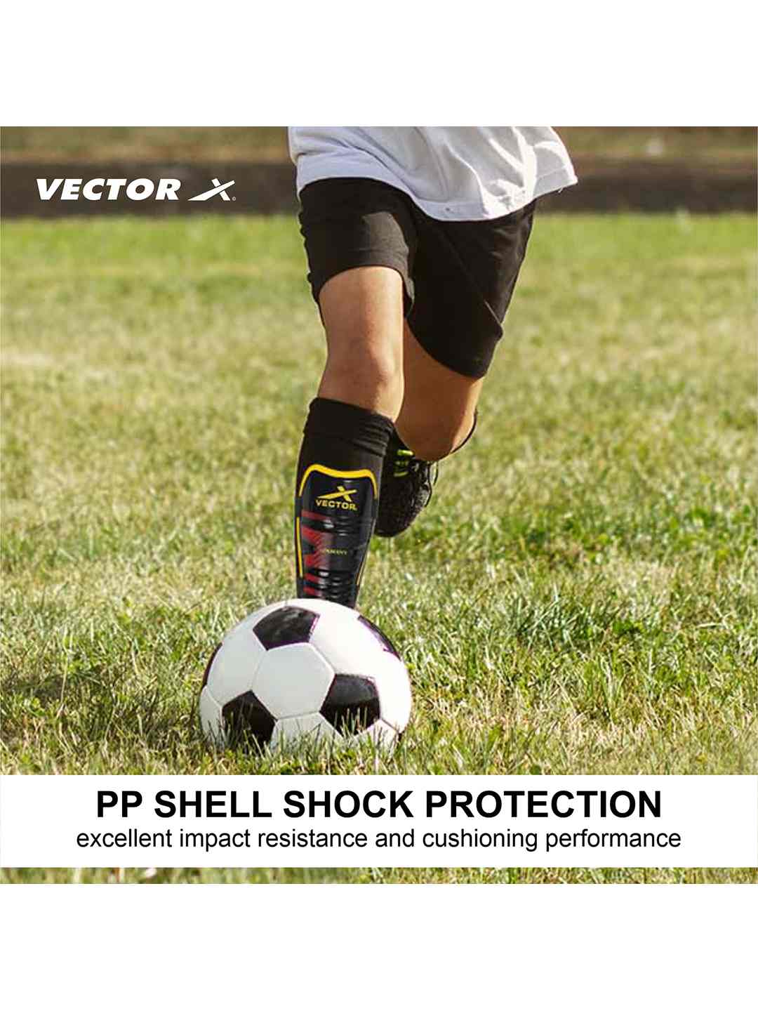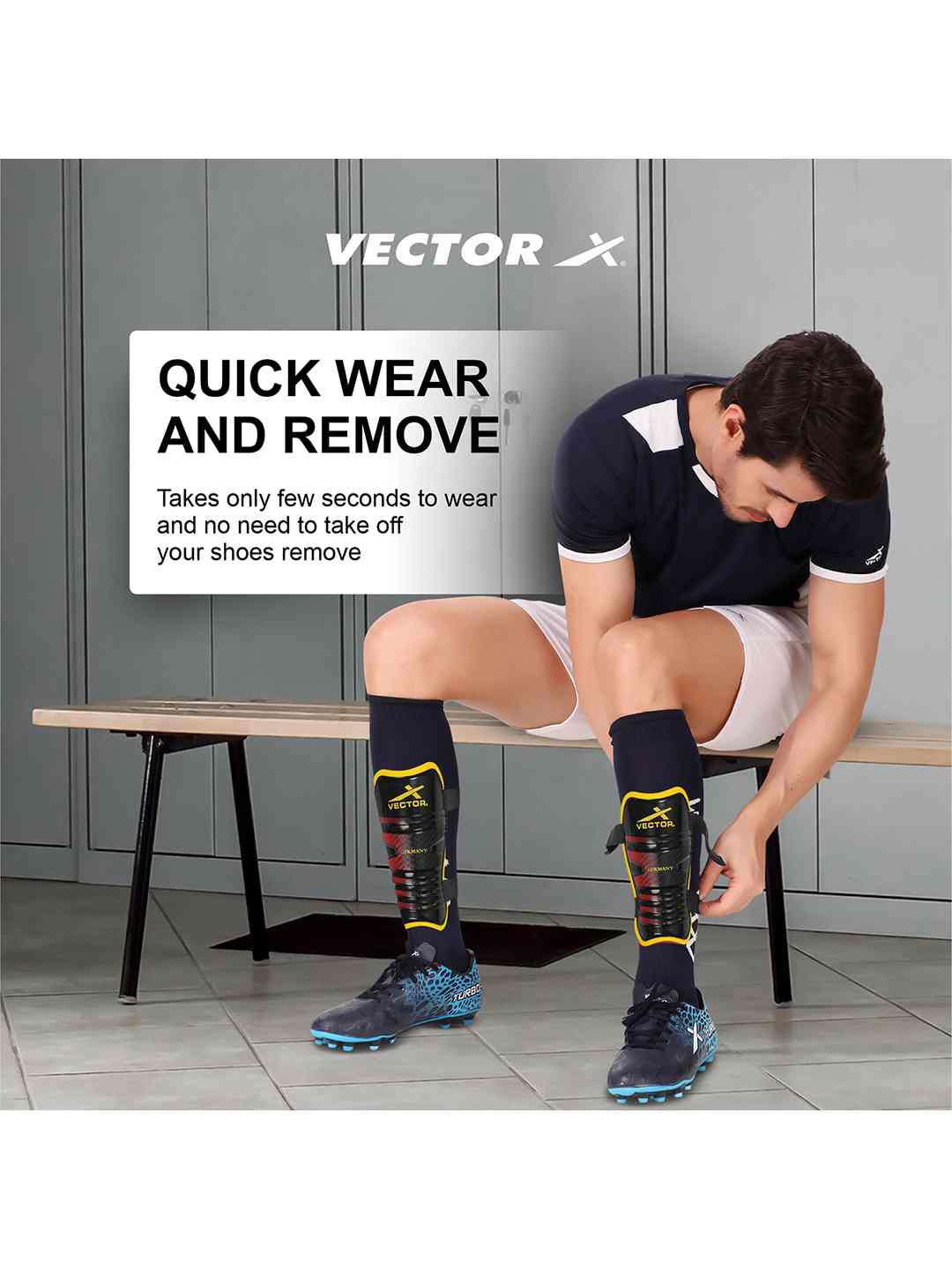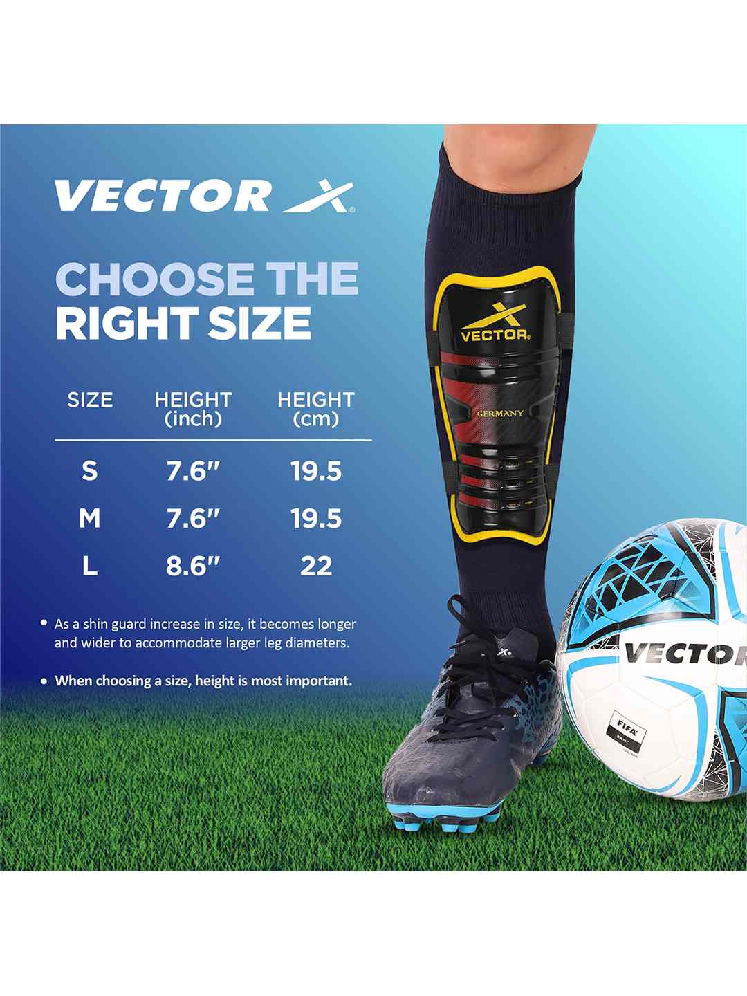 You can dominate opponents match after match with Vector X Shin guards, but you still need your own defences. These football shin guards are hard-wearing enough to withstand the rigours of match play. The hard shell is moulded to the natural contours of the lower legs, while comfy EVA foam cushioning softens impacts. Take to the pitch with confidence in these Shin Guards of Vector X. They're made from durable material with diagonal grooves to the front to help lessen any impact. The reverse side features soft padding to allow them to rest comfortably on your shins.