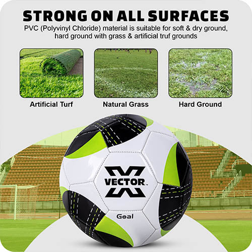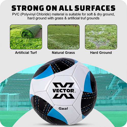 Vector X Goal Practice & Training Strong Glossy PVC Upper + SR Bladder Recreational Ball Soccer Football|Suitable for Soft & Wet Ground, Hard Ground with Grass - Size 5 (Pack of 1)