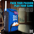 Vector X Greenfield 60 LTR. PU Polyester Cricket Backpack Senior Kit Bag Without Wheel|1 Pocket for Bat|Shoe & Accessories Pockets |1 Water Bottle Holders|Lightweight |Dual Opening (Blue - Black)