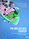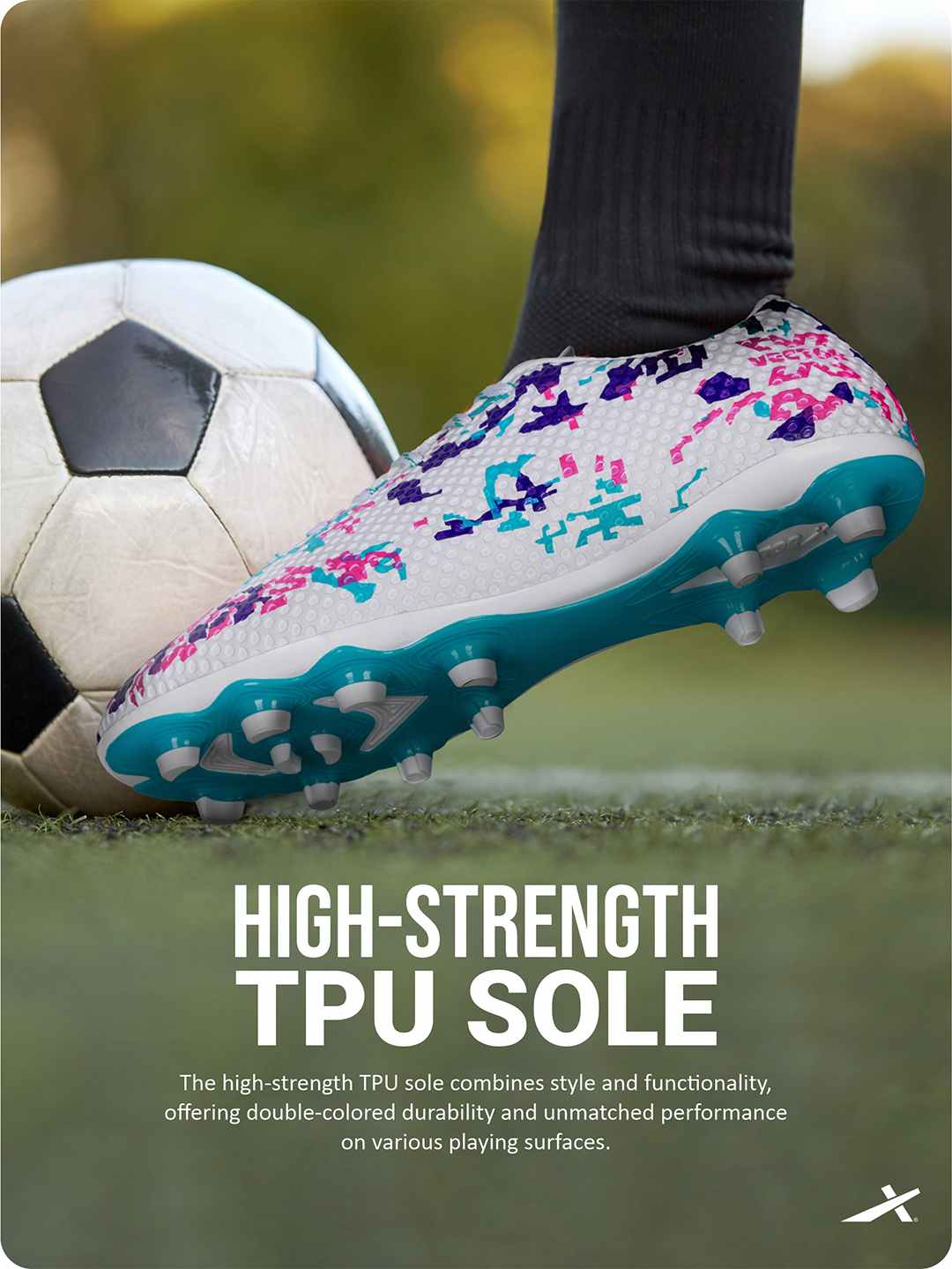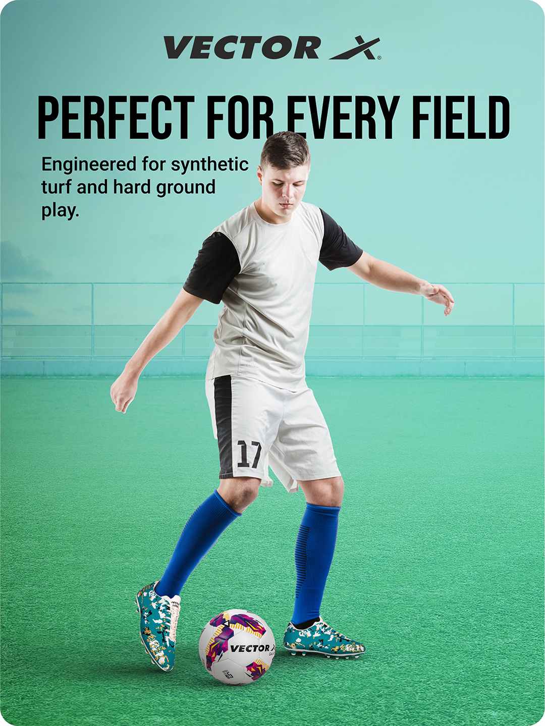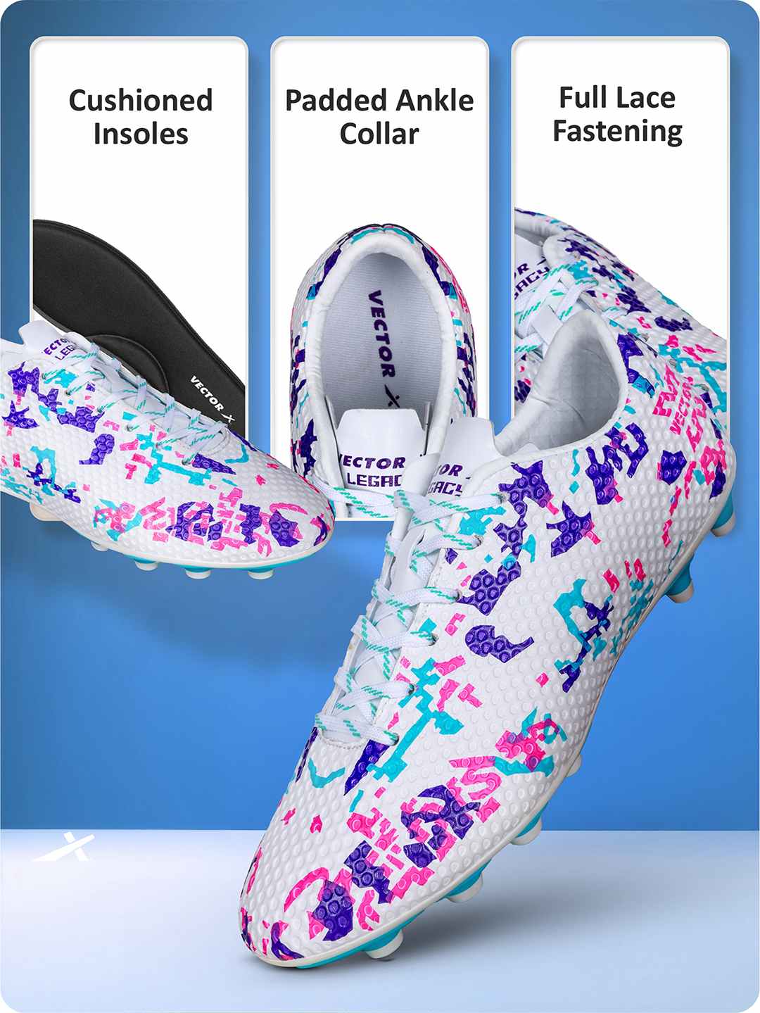 Designed for champions, the Vector X football shoes combine cutting-edge materials with comfort-focused construction. Featuring a 3D textured upper with TPU fusing, these shoes offer superior ball control and a sleek look. The electroplated TPU sole ensures high abrasion resistance and long-lasting durability, while strategically placed studs enhance traction on the field for agile movements and quick turns. With moulded breathable in-socks, they provide all-day comfort during training and matches. Built to perform — built the Vector X way.