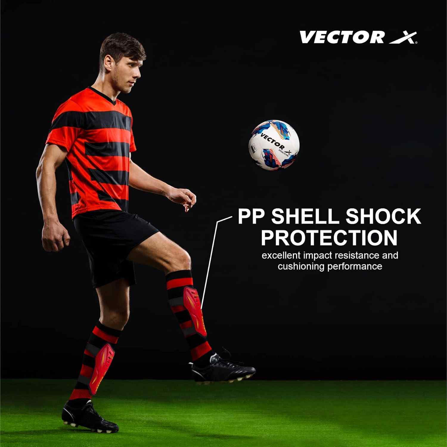 Vector X Football Shin Guard(Left & Right Orientation)Designed for men who take their football game seriously, the Vector X Football Shin Guards offer optimal protection and comfort during play. These guards are crafted to shield your shins against hard impacts while allowing free movement on the field. The product is suitable for both left and right legs and comes in a convenient large size, making it ideal for adult players.The color and design may vary from the images shown, as the product is sourced in mixed batches to ensure continuous availability.
