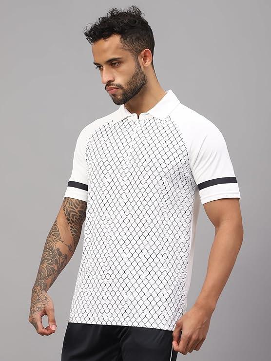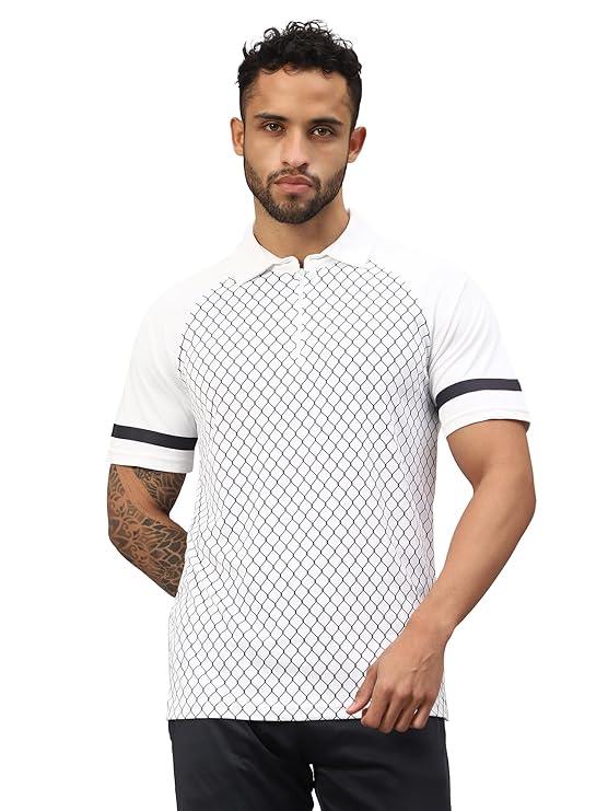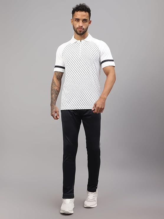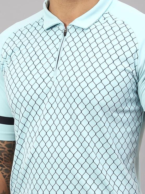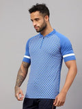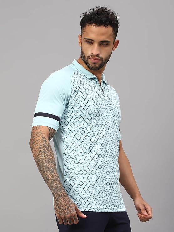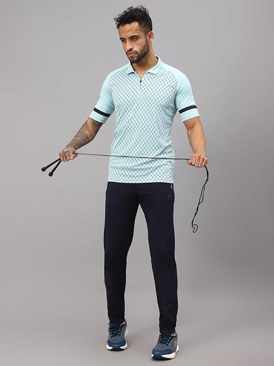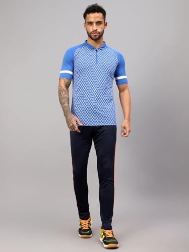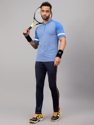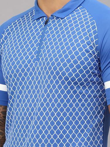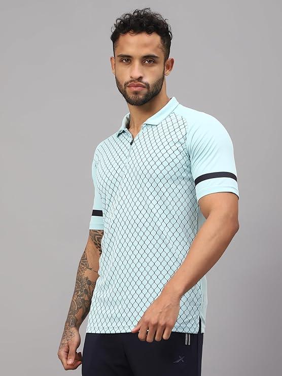 Vector X Mens Sports Wear Polyester Front Printed Collar Neck with Front Zipper Opening Half Sleeves T-shirt For Running, Training, Athletic