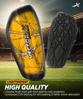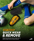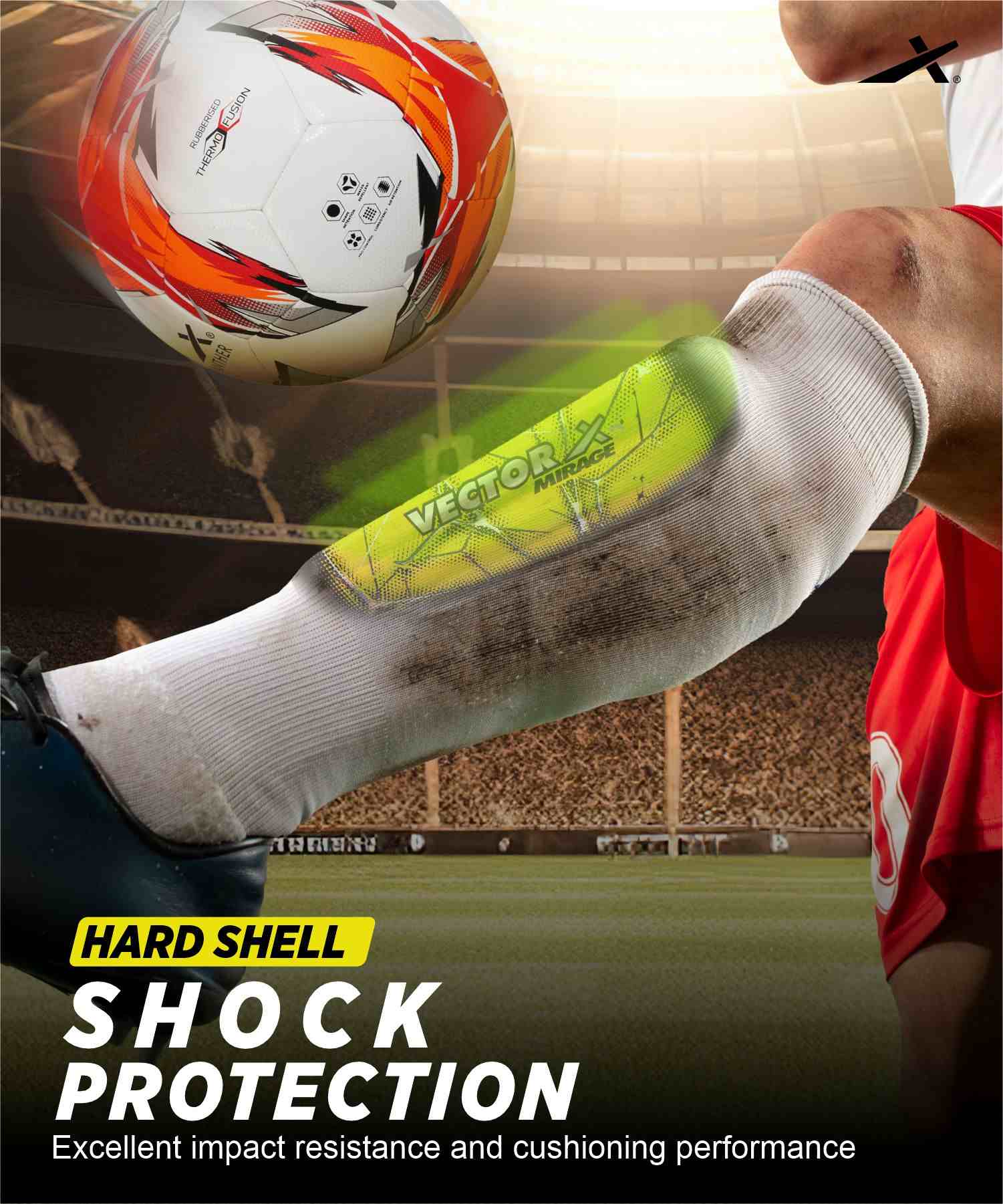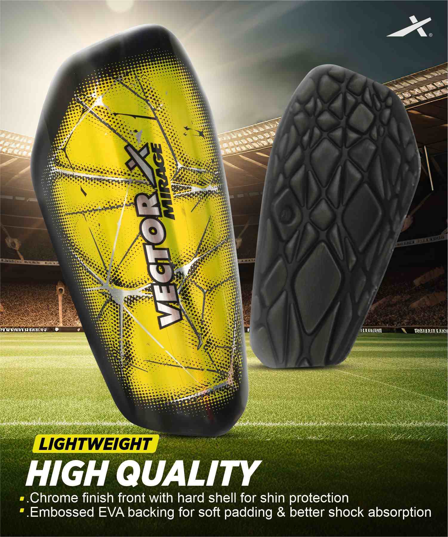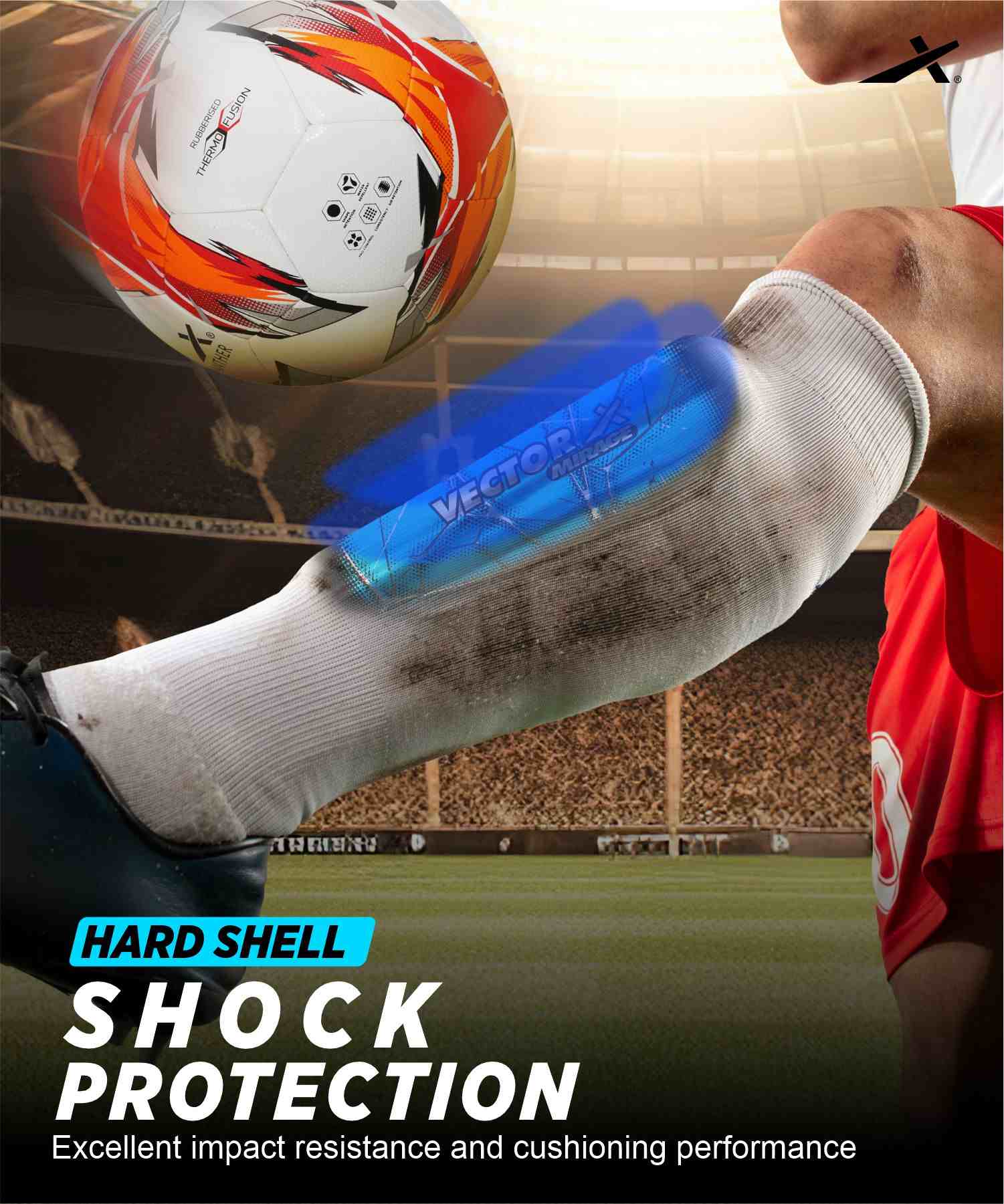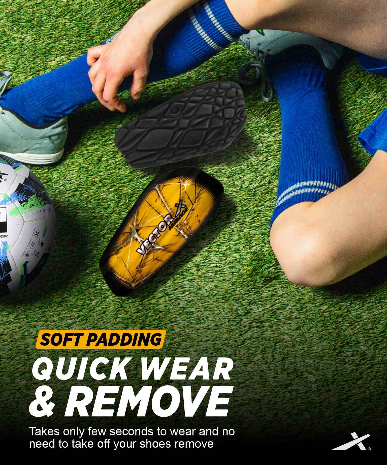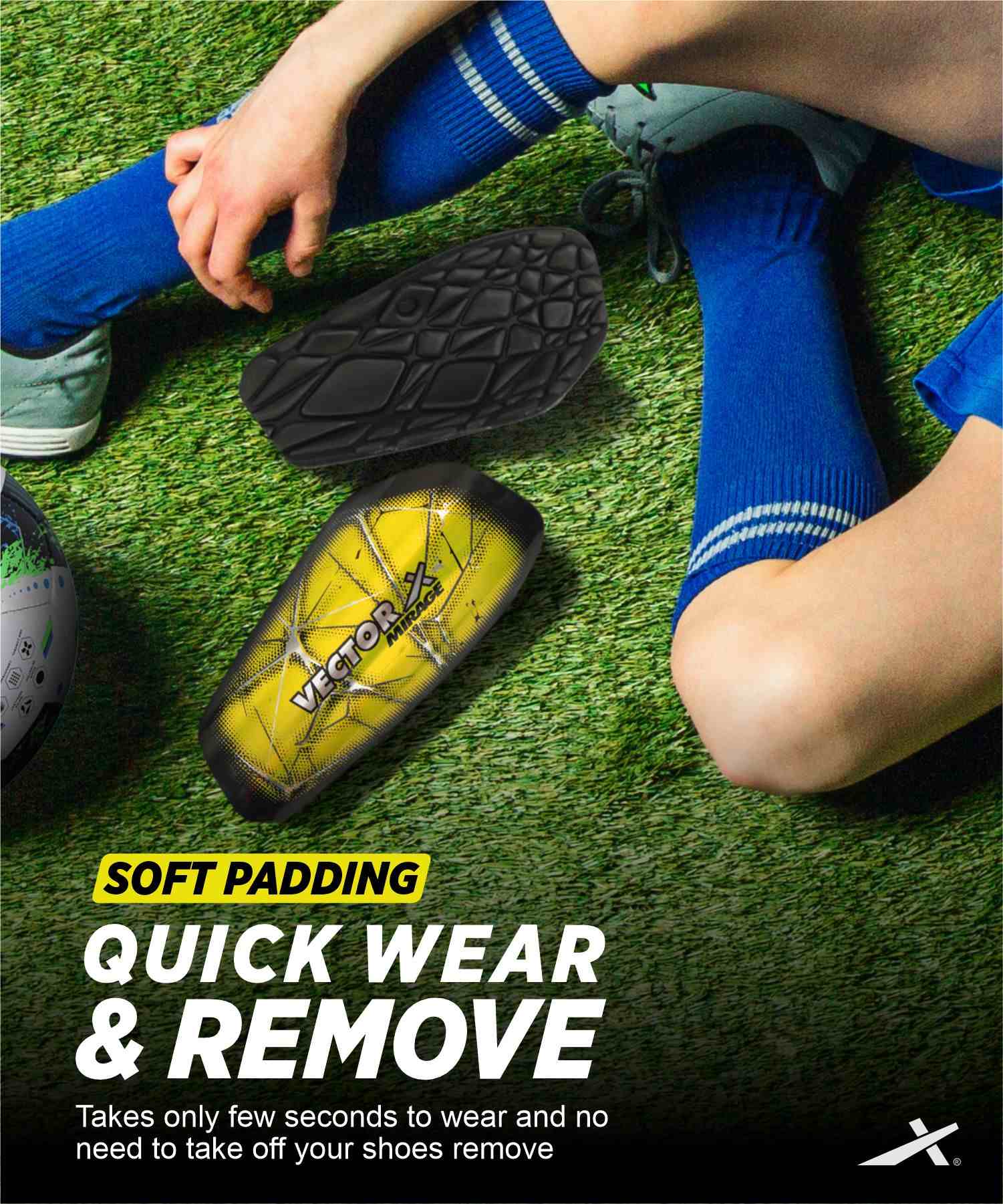 You can dominate opponents match after match with Vector X Shin guards, but you still need your own defences. These football shin guards are hard-wearing enough to withstand the rigours of match play. The hard shell is moulded to the natural contours of the lower legs, while comfy EVA foam cushioning softens impacts. Take to the pitch with confidence in these Shin Guards of Vector X. They're made from durable material with diagonal grooves to the front to help lessen any impact. The reverse side features soft padding to allow them to rest comfortably on your shins.