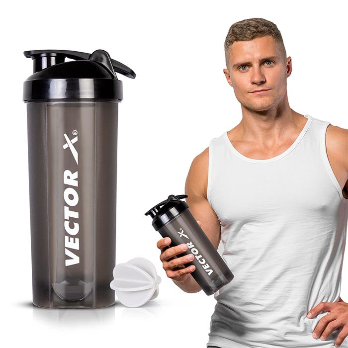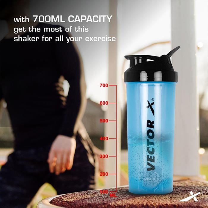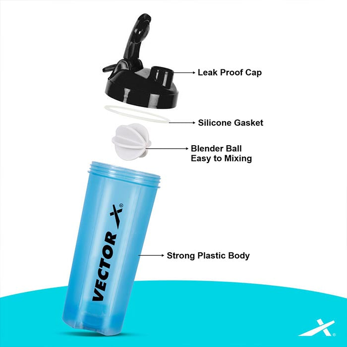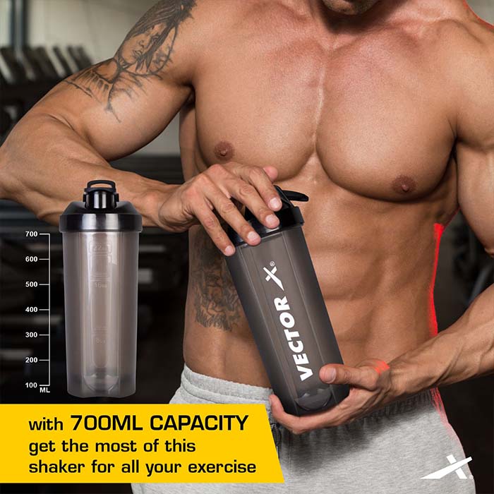 <p> Vector X Nitro 700 ml Shaker storage capacity and leak proof. 100% Non-Toxic and BPA Free. Unique Lock and open mouth feature. Light weight, easy to carry and use. Asymmetrical one-hand design / easier to grab and hold on the side-line or in the gym. Translucent body enables you to track your consumption throughout your workout Quick lock and open mouth function allow easy flow of water. It's a MUST HAVE sport Shaker bottle for Jogging, Gym, Yoga, Runners, Athletes, CrossFit, Travel, Hiking, Cycling, Tennis, Camping, Workouts, Work Office, School or Outdoors Eco friendly, recyclable, reusable and shatterproof giving you a healthy and less expensive option than bottled water, making it the PERFECT GIFT for that active someone Hydration on the go.