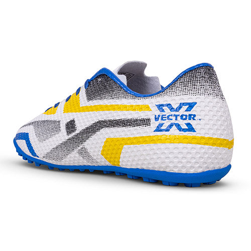 Vector X Rapid 2.0 Pro 3D Texture Futsal Shoes are engineered for top performance on synthetic turf, hard ground, and indoor courts. Their advanced 3D texture TPU-fusing upper enhances ball control, durability, and reduces water absorption, while the double-colour high-strength TPU sole delivers superior grip, stability, and long-lasting traction. Designed to support sharp directional changes, these shoes feature a lightweight yet tough construction with a secure heel fit, soft cushion sockliner, and reliable lacing system for comfort and lockdown. Ideal for men, youth, and boys, they offer responsive support, comfort, and control for competitive play.