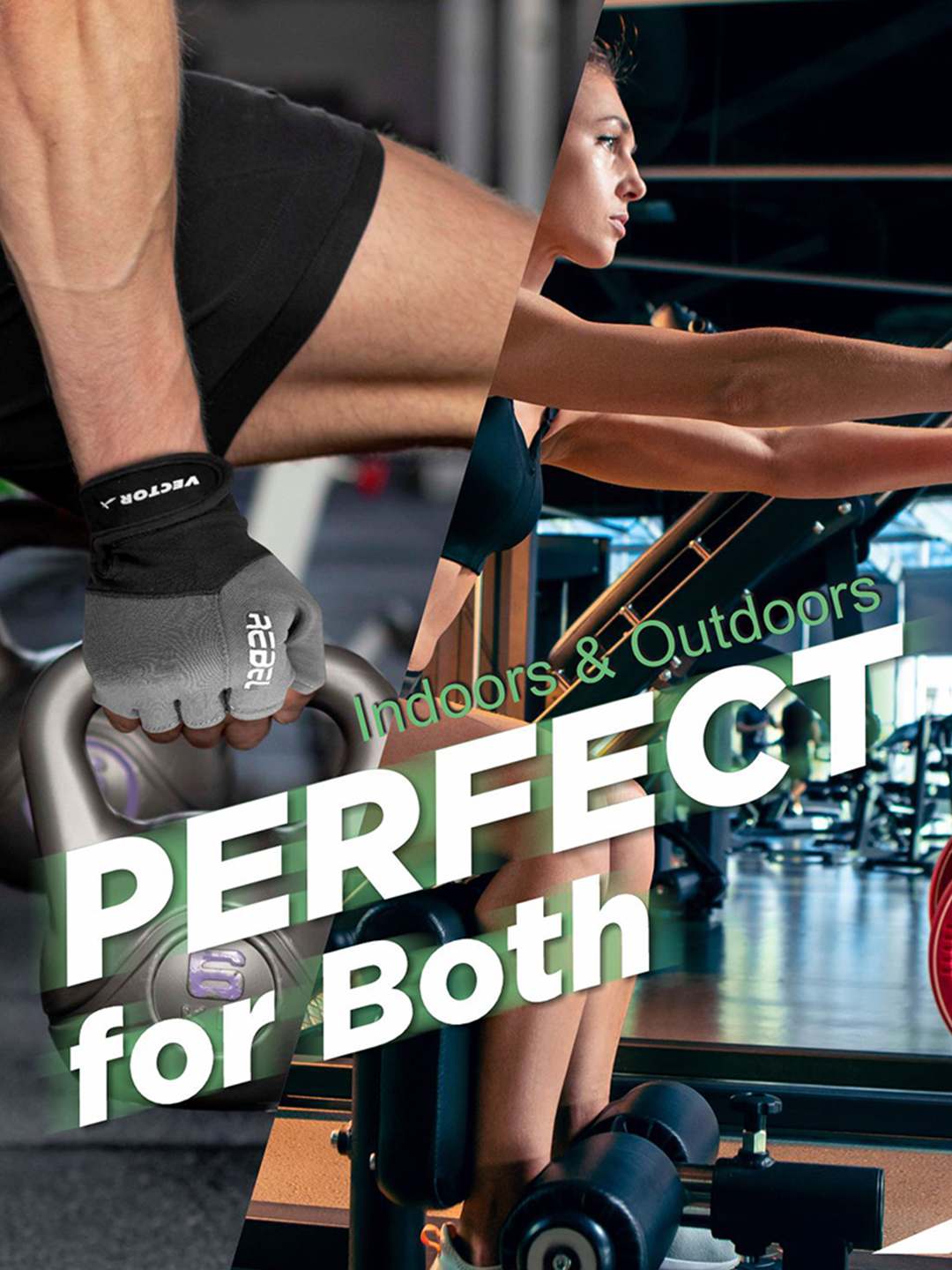 Vector X Rebel Unisex Workout Weight Lifting Gloves for Men and Women with Wrist Support,Fingerless Grip for Weightlifting,Cycling,Exercise,Training,Fitness