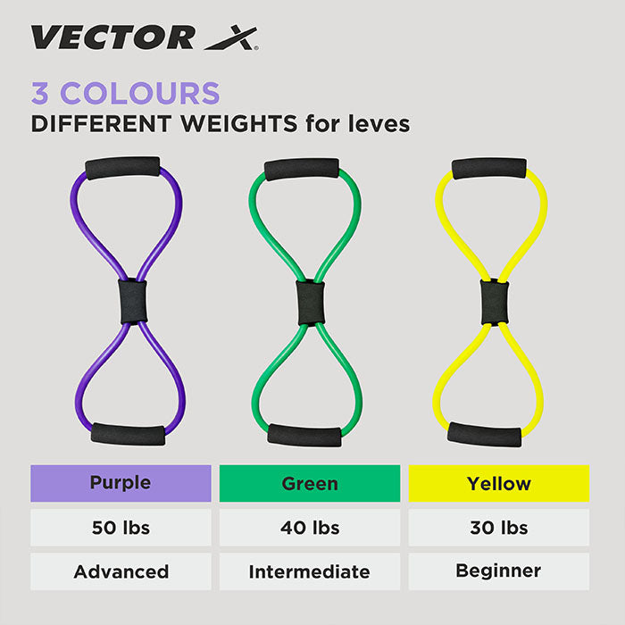 Vector X Resistance Bands, Figure 8 Exercise Bands Thermoplastic Elastomer Rubber (TPER) Material for Stretching Arms, Chest Expander, Yoga Gym Fitness Pulling Rope|Toning Tube|Gym Exercise for Equipment for Home Workout|Ideal for Men & Women