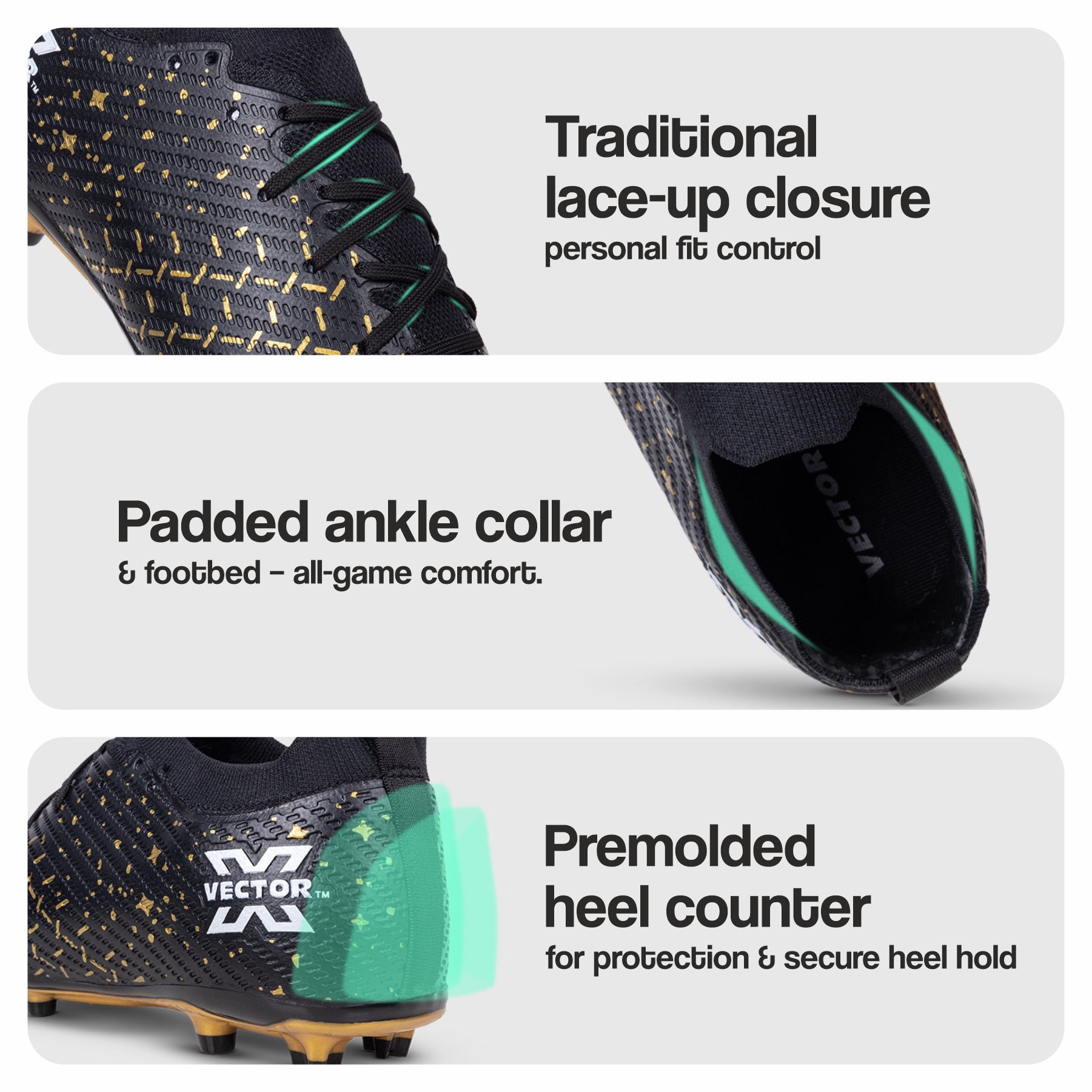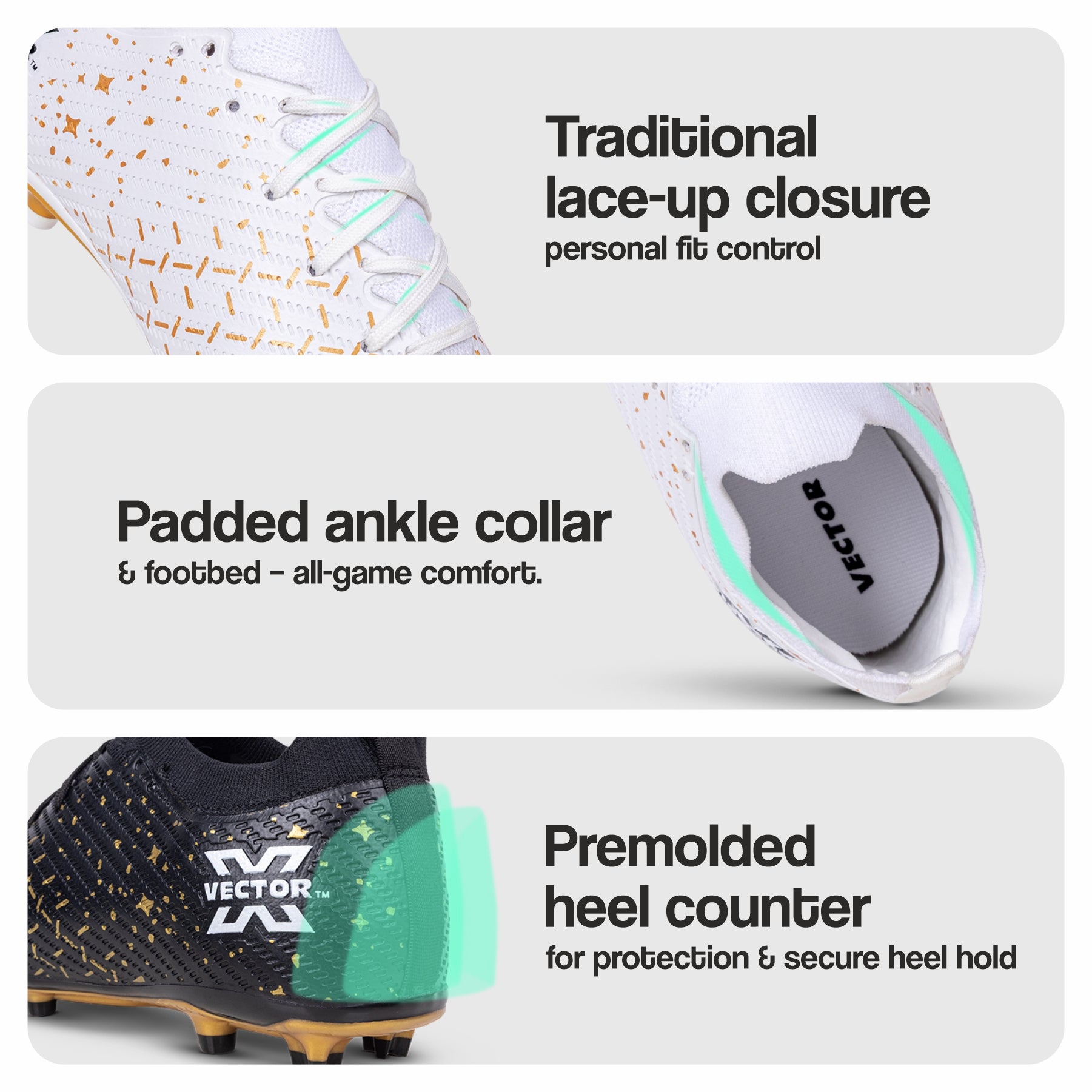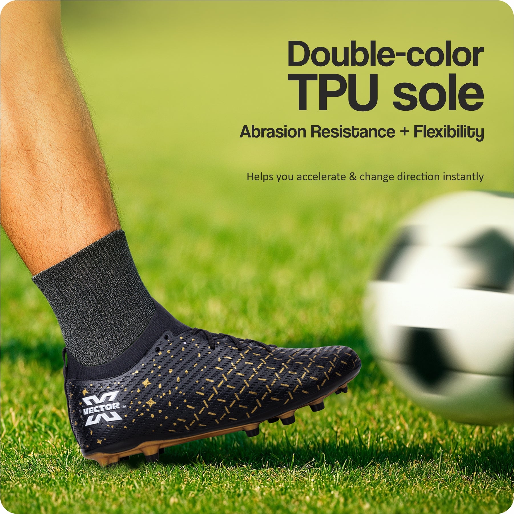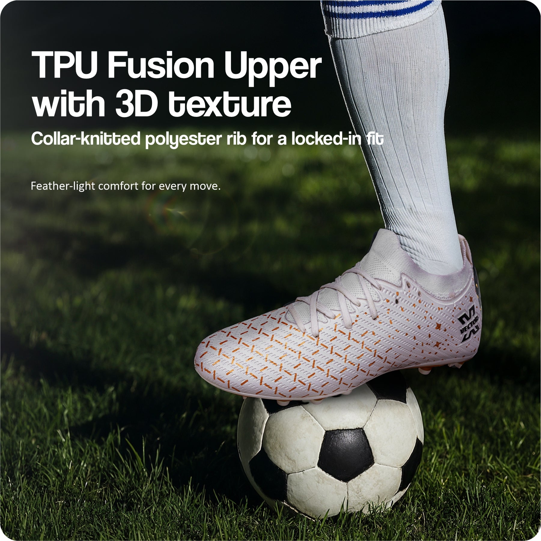 Vector X Starlight Men’s Elite Firm Ground Soccer Cleats Shoes – Primeknit Sock For Superior Grip, TPU Sole, 3D Texture TPU Fusing upper, Lightweight Football Boots