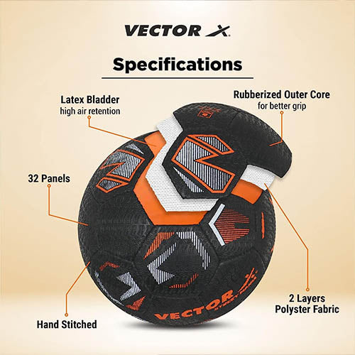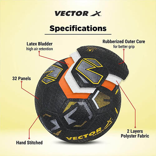 Vector X Street Mania 32 Panel Rubberised Material with Latex Bladder Hand Stitched Indoor/Outdoor Water-Resistant Match, Training Football + Pump , For Men Adults 15+ Years Boys Size 5