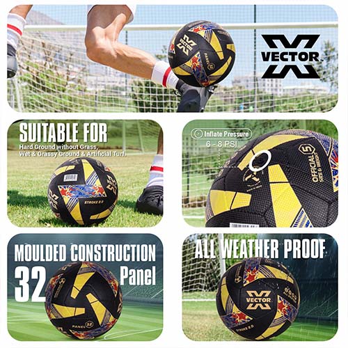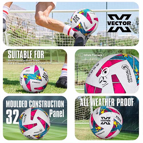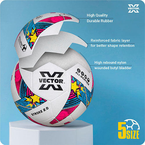 Vector X Stroke 2.0 Machine Stitched 32 Panel Football Rubber Moulded Soccer Ball with Air Pin|Indoor & Outdoor Ball|Training Practice Match Ball