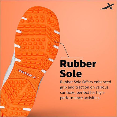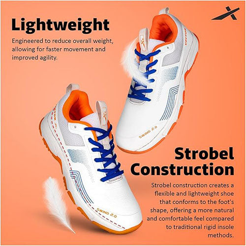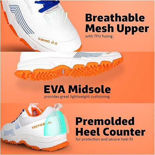 Vector X Swing 2.0 Cricket Shoes for Men & Boys Sports Shoes Lightweight Upper with TPU Fusing, EVA Midsole with Rubber Oustole Cricket Practice/Professional (Whie-Orange)