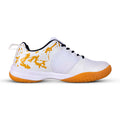 Designed specifically for peak performance on the badminton court, these shoes combine functionality, comfort, and style. The breathable mesh upper with TPU fusing offers lightweight ventilation and structure, while the synthetic overlays ensure lasting durability. The EVA midsole delivers excellent cushioning without adding weight, enhancing your movement and comfort. A rubber outsole provides superior traction, durability, and slip resistance during intense play. The midfoot TPU shank reinforces arch support for added stability, while the premolded heel counter offers a secure fit. Strobel construction, padded ankle collar, full lace fastening, and EVA insock complete the design for unbeatable court control and comfort.