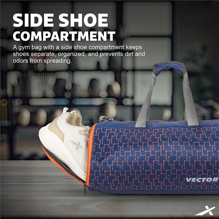<p> Vector X Vibe Gym Bag, crafted for both men and women, seamlessly blends durability with style. Constructed from high-quality, water-repellent polyester, it provides robust protection and long-lasting performance, keeping your gear safe and dry. The adjustable shoulder strap ensures a personalized, comfortable fit, while the dedicated side compartment neatly separates your shoes from the rest of your belongings, preventing dirt and odors from contaminating your clean clothes. With its spacious, well-organized interior, this gym bag makes it easy to keep your workout essentials arranged and accessible. Combining practical features with a sleek design, the Vector X Vibe Gym Bag is the perfect choice for a streamlined, efficient, and fresh workout experience. </p>