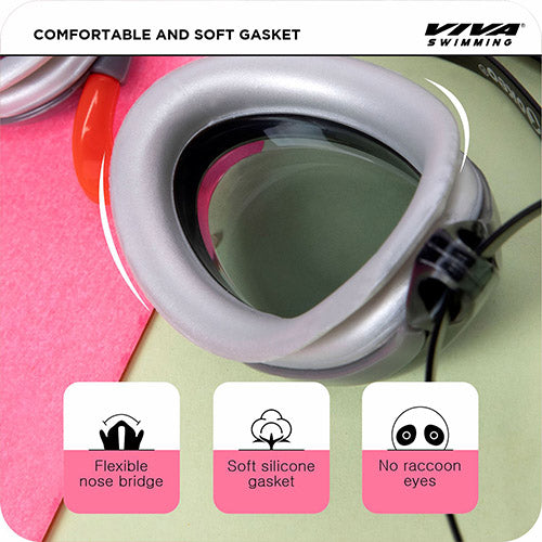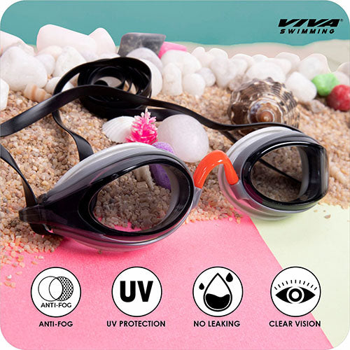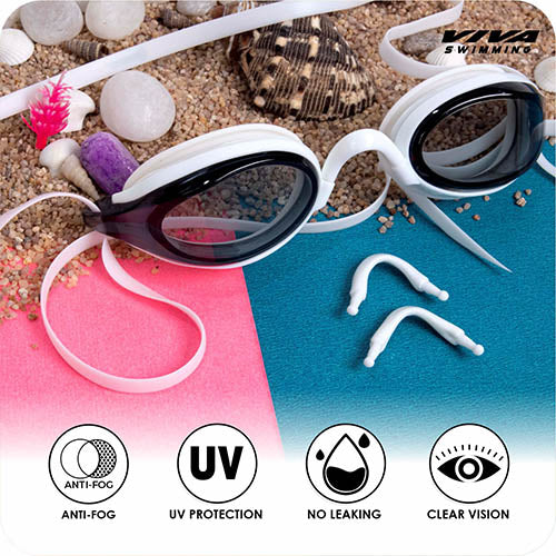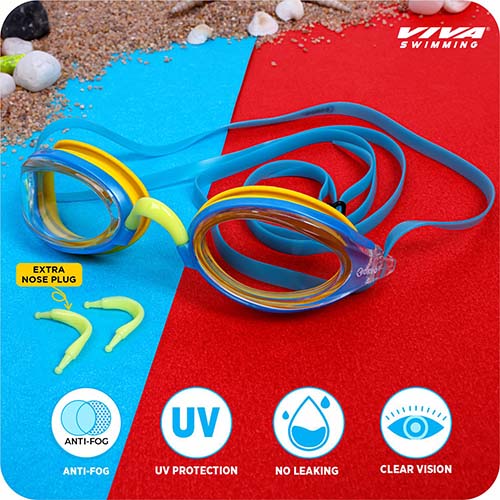 VALUE VIVA SWIMMING GOGGLES PACKAGE- Swim Goggles + Earplugs + Swim Cap. With these items,you will be able to enjoy your swimming.The swim goggles fits most of people. • ANTI FOG & UV PROTECTION --The inner surfaces of the lenses are anti-fog coated to prevent fogging. You will have a clear and wide sight under water. The outer surfaces of the lenses are carefully coated with ultraviolet-proof material, effectively protect your eyes from being hurt by bright sunlight, especially when you swim in the open air. • ?NO LEAKING,FLEXIBLE & COMFORTABLE – VIVA swim goggles have double -deck seal design and flexible silicone gasket frame construction to ensure a leak-proof seal. 3D ergonomic design fits your eye socket. Its well-designed buckle makes it easy to put on and take off swimming goggles. • ENJOY YOUR SWIMMING--The Mirrored anti-fog goggles used poly-carbonate has incredible impact resistance. The nose clip and earplugs not only protect your nasal cavities and eardrum, but also improve your swimming performance. • ENJOY SWIMMING TIME- Perfect for outdoor and indoor activities including: Casual swimming ,Swimming Classes ,Triathlons, Pool Parties, Synchronized Swimming, Water Fitness Classes, Water Skiing, or just enjoy time in the water.