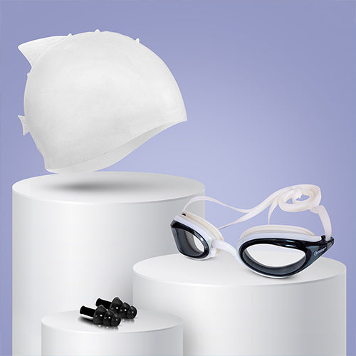 Viva Swimming Shark Fin Kids Swimming Cap & Goggles with 2 Ear Plug Kids OKEO Swimming Combo Kit