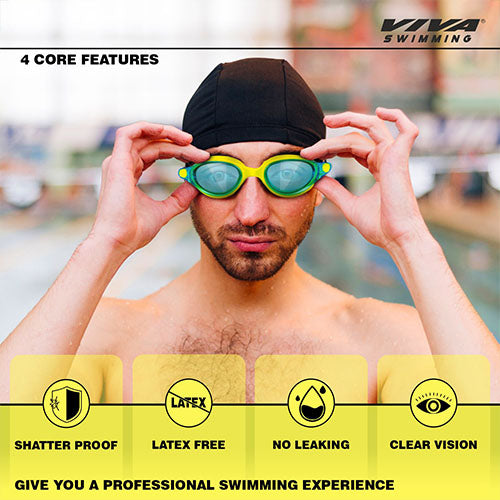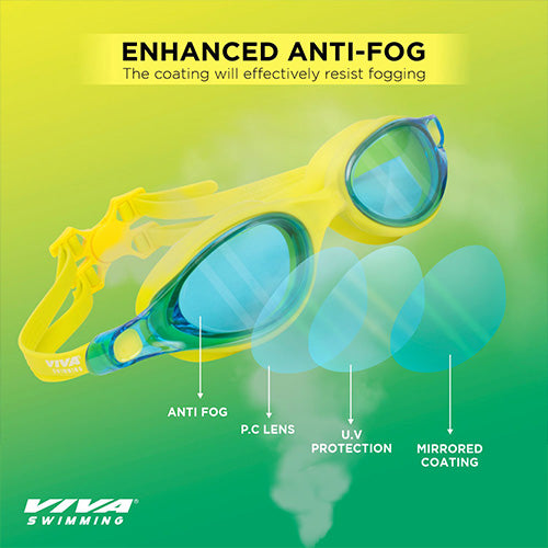 Viva Swimming Vision Silicone Swimming Goggles Mirrored Nose Bridge|Anti-Fog, UV Protection|Wide View & Comfortable One Piece|For professional Swimmer|Case Packing